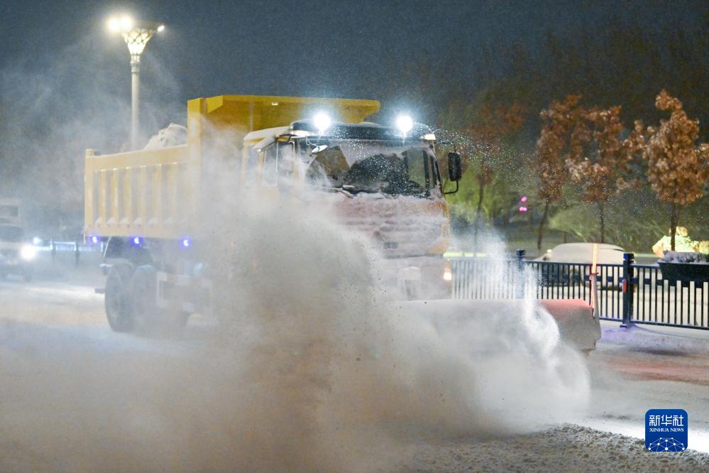 11月6日,清雪車(chē)在哈爾濱友誼西路上清除路面積雪。