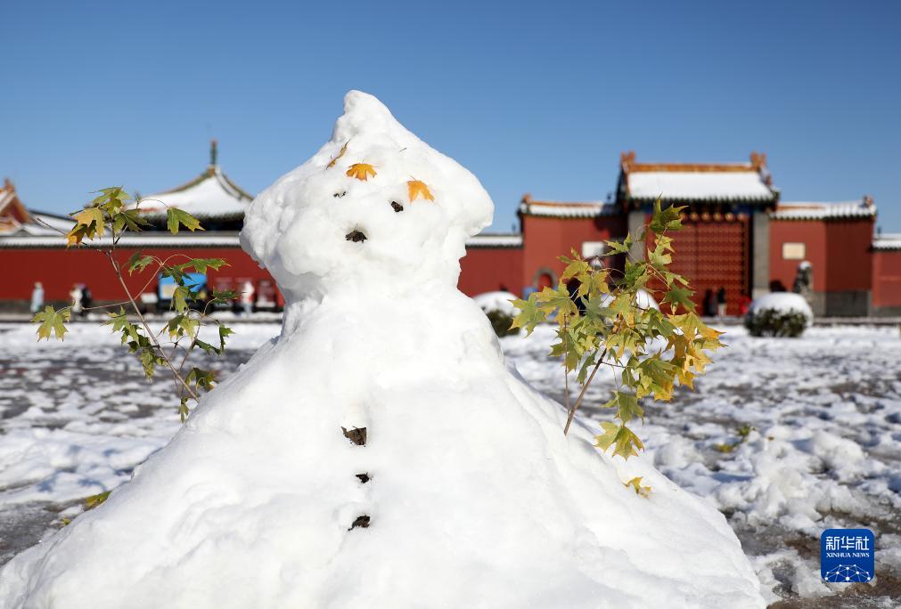 11月7日在沈陽(yáng)故宮門(mén)前拍攝的雪人。
