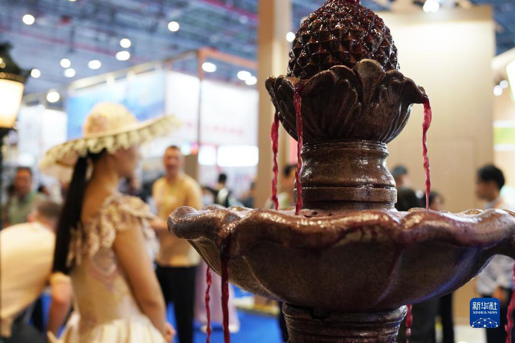 11月8日在第六屆進(jìn)博會(huì )食品及農產(chǎn)品展區拍攝的紅酒噴泉。
