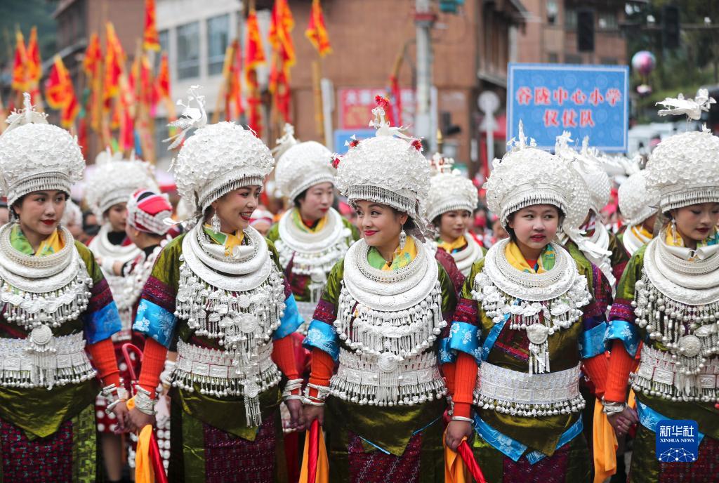 當日,貴州省黔東南苗族侗族自治州黃平縣谷隴鎮迎來(lái)蘆笙節。當地苗族群眾身著(zhù)盛裝,載歌載舞歡度節日,祈禱來(lái)年風(fēng)調雨順、五谷豐登。