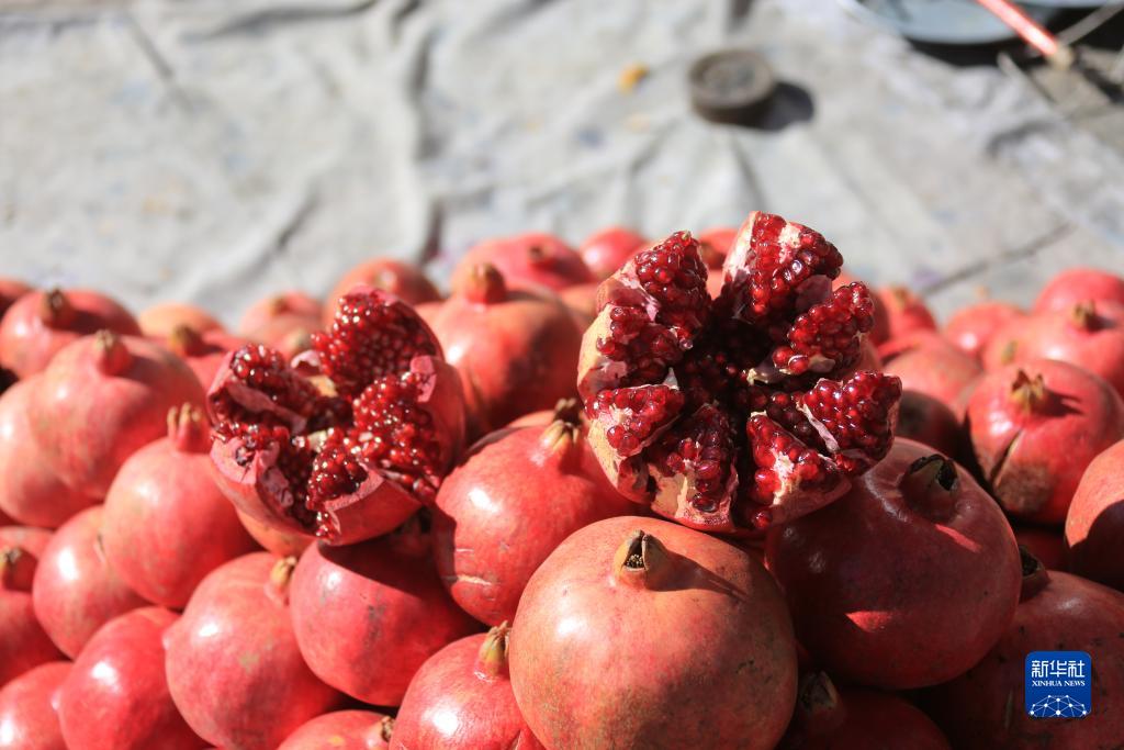 11月10日,在阿富汗首都喀布爾,一處攤位售賣(mài)產(chǎn)自阿富汗南部坎大哈省的石榴。