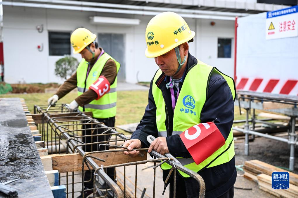 11月10日,工人在項目現場(chǎng)比賽。