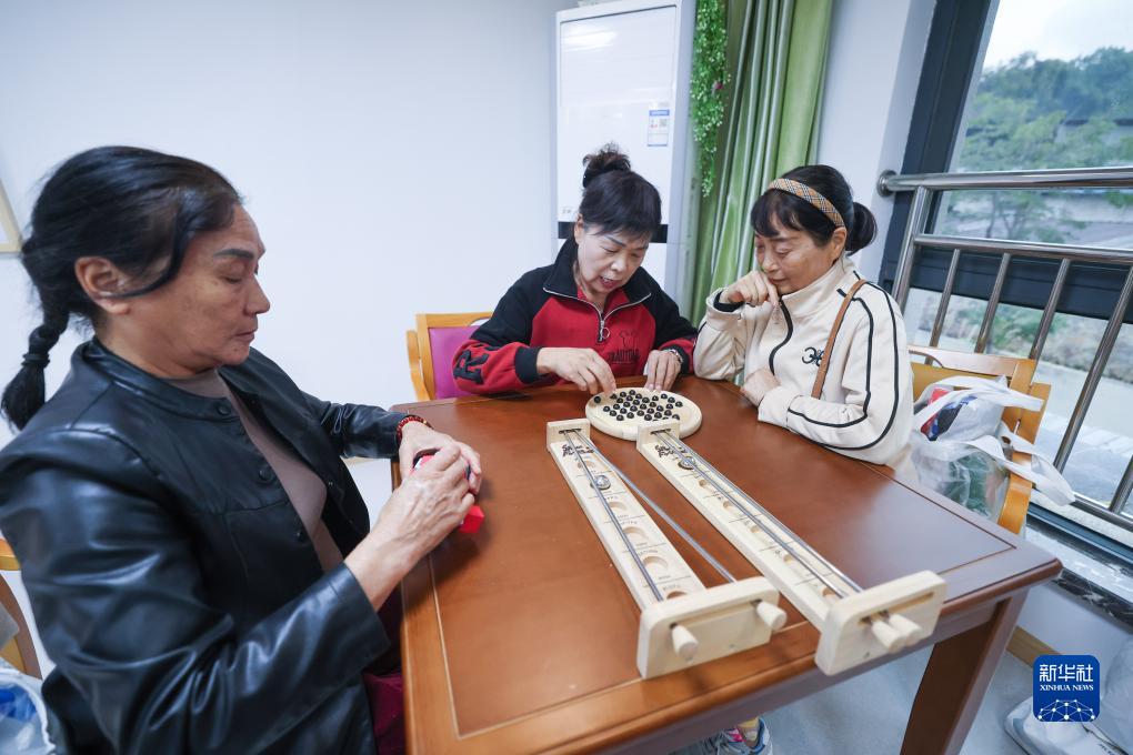 11月10日,在云和縣百齡幫鳳凰家園長(cháng)者養護中心的老年木玩活動(dòng)室內,老人們在玩益智木玩。云和縣民政部門(mén)積極在多個(gè)養老中心推進(jìn)木玩活動(dòng)室的建設,活動(dòng)室以益智類(lèi)、運動(dòng)類(lèi)、康復類(lèi)、康養類(lèi)等木制玩具為媒介,幫助老年人動(dòng)手動(dòng)腦,保持大腦健康活力。