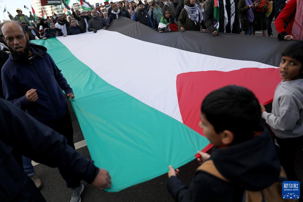 當日,數十萬(wàn)民眾在英國倫敦參加聲援巴勒斯坦的游行集會(huì ),呼吁盡快實(shí)現加沙?;?。