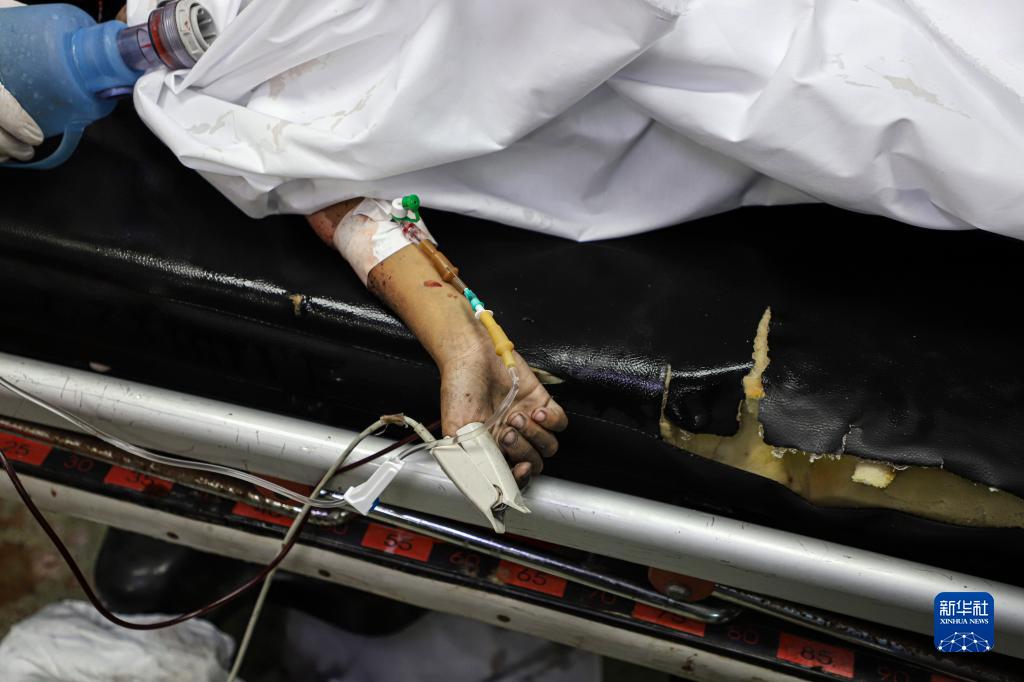 11月12日,一名傷者在加沙地帶南部城市汗尤尼斯接受治療。