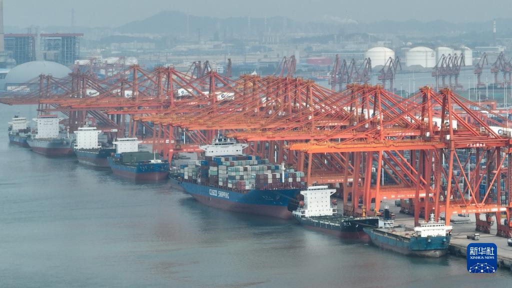 海輪在欽州港集裝箱碼頭裝卸貨物(11月12日攝,無(wú)人機照片)。