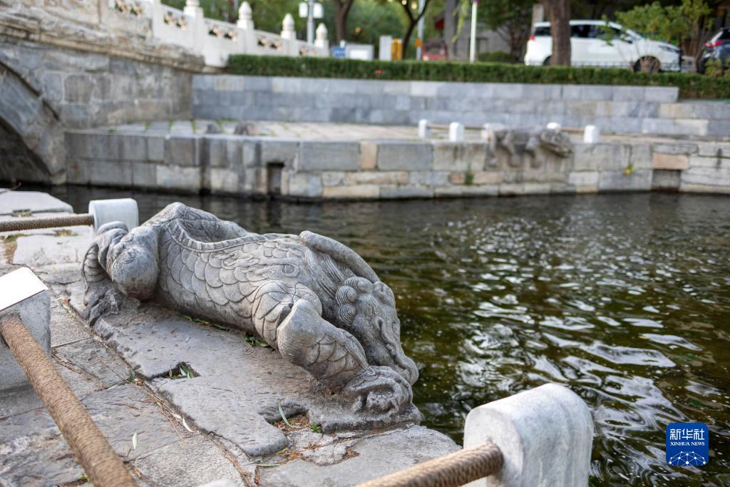 北京萬(wàn)寧橋的鎮水獸(11月6日攝)。萬(wàn)寧橋位于北京地安門(mén)外大街中部、什剎海東岸,是北京中軸線(xiàn)上最古老的橋梁,至今已有700多年歷史。作為北京中軸線(xiàn)與大運河玉河段的交匯點(diǎn),自元代始建起,萬(wàn)寧橋一直承擔著(zhù)南北交通的重要功能。