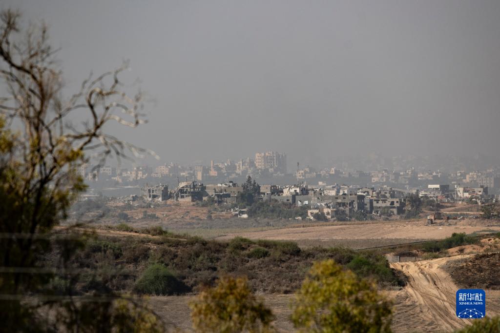 這是11月24日在加沙邊境以色列一側拍攝的?;鹕Ш蟮募由潮辈壳闆r。