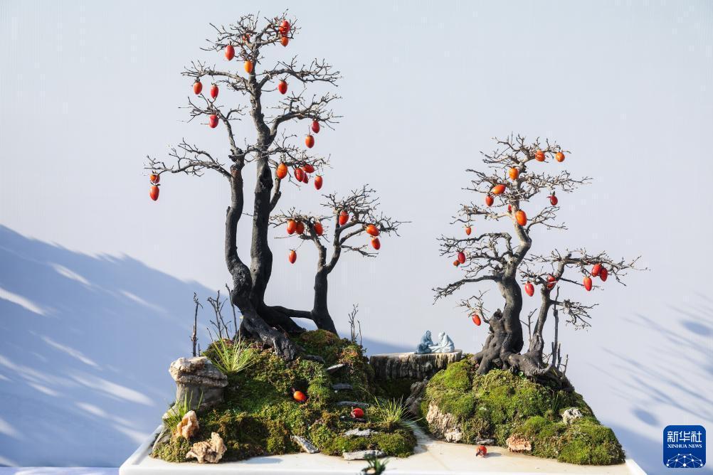 11月25日,第二十一屆中國(金華)花卉苗木博覽會(huì )上展示的盆景。