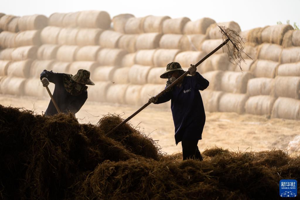 近日,在湖南省益陽(yáng)市南縣武圣宮鎮沿河堤村的稻草飼料化項目現場(chǎng),工人們忙著(zhù)將成捆秸稈進(jìn)行打散篩選,送入飼料化生產(chǎn)線(xiàn)。秸稈經(jīng)過(guò)切碎、震蕩過(guò)篩、風(fēng)選除塵、壓縮打包等工序后,即可成為牛羊飼草。據悉,該基地每年秸稈離田收儲能力可達1萬(wàn)噸、年飼料化加工能力8000噸,每噸毛利潤約400元。