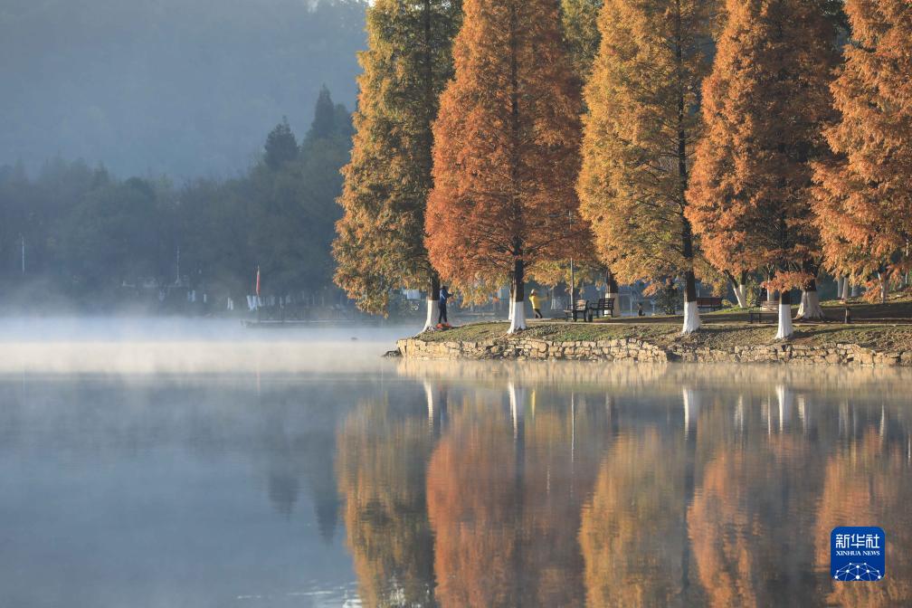 11月17日在貴州省貴陽(yáng)市觀(guān)山湖區觀(guān)山湖公園拍攝的初冬景色。