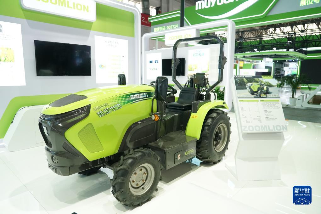 11月26日在中國國際供應鏈促進(jìn)博覽會(huì )綠色農業(yè)鏈展區拍攝的一款電動(dòng)大棚拖拉機。