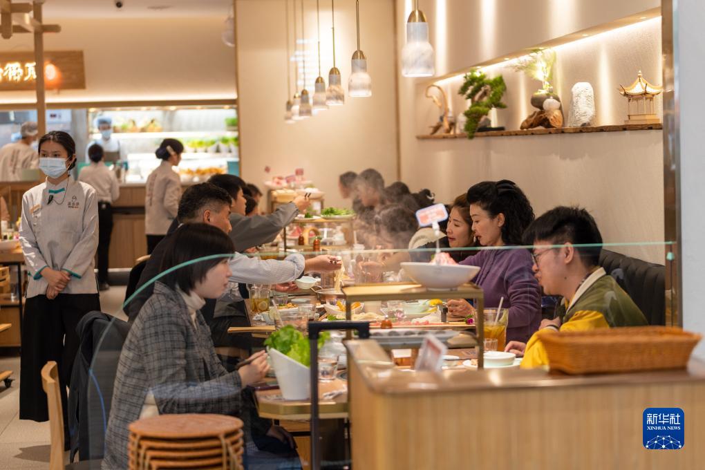 11月26日,消費者在江蘇省南京市一家商場(chǎng)內吃火鍋。