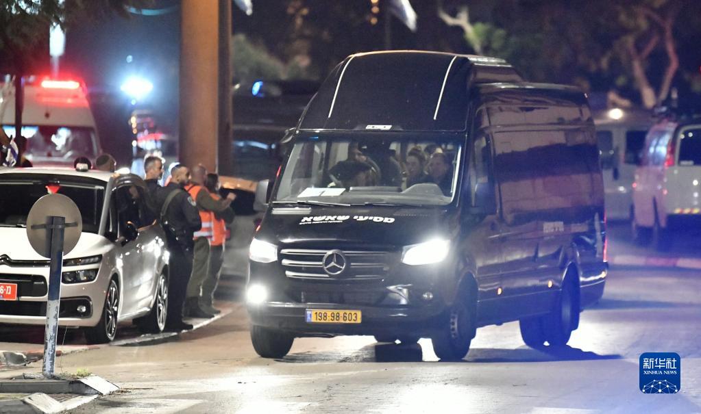 11月26日,載有哈馬斯釋放的第二批被扣押人員的車(chē)輛抵達以色列拉馬特甘的一所醫院。