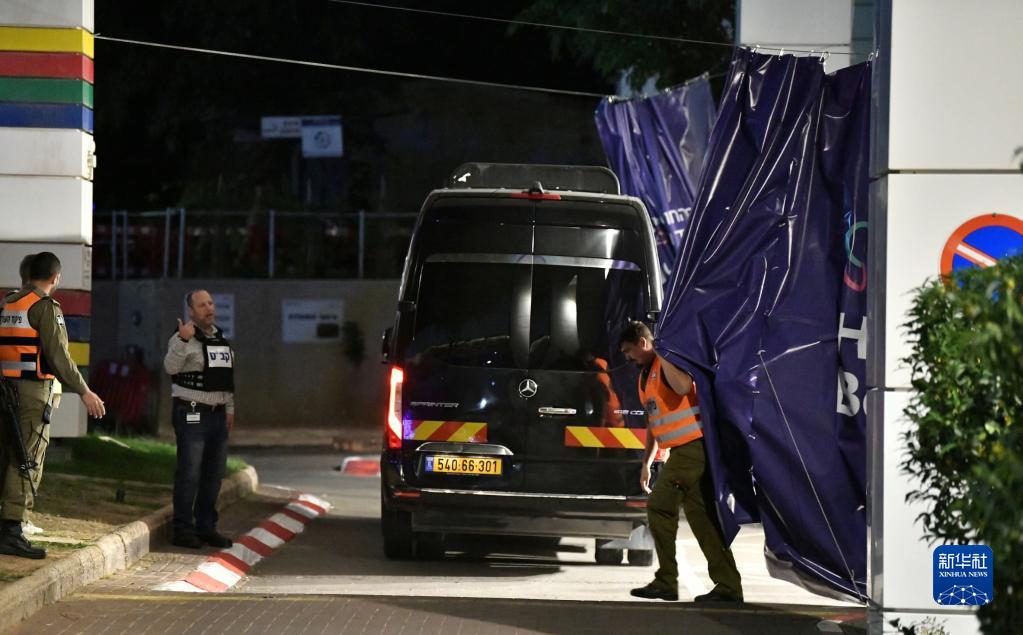 11月26日,載有哈馬斯釋放的第二批被扣押人員的車(chē)輛抵達以色列拉馬特甘的一所醫院。
