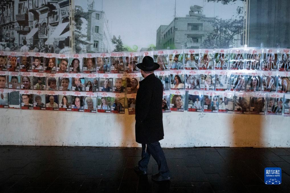 11月27日,在耶路撒冷,一名男子從被扣押人員海報前走過(guò)。