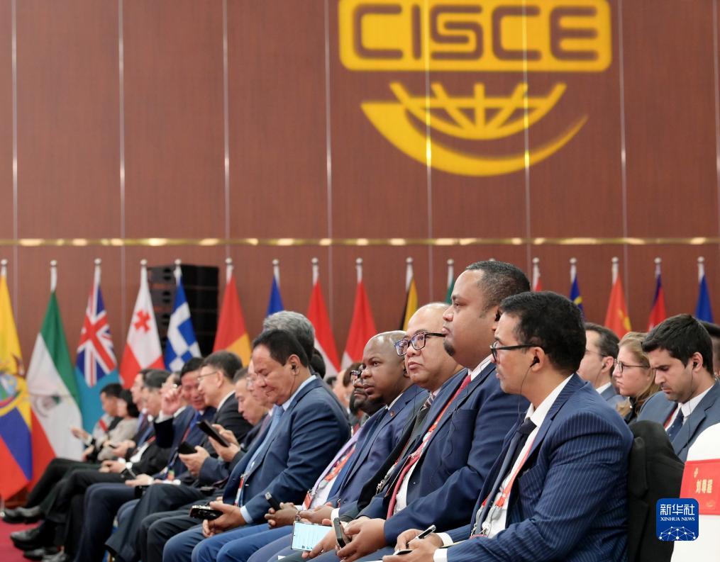 11月28日,中外與會(huì )嘉賓在博覽會(huì )開(kāi)幕式現場(chǎng)聆聽(tīng)主旨演講。