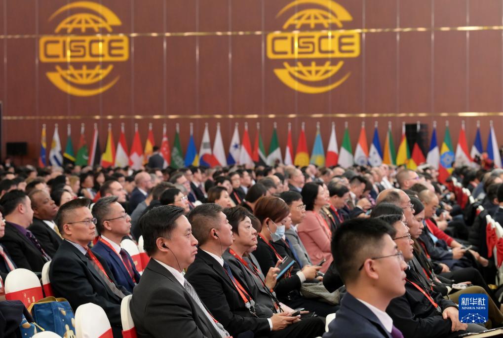 11月28日,中外與會(huì )嘉賓在博覽會(huì )開(kāi)幕式現場(chǎng)聆聽(tīng)主旨演講。