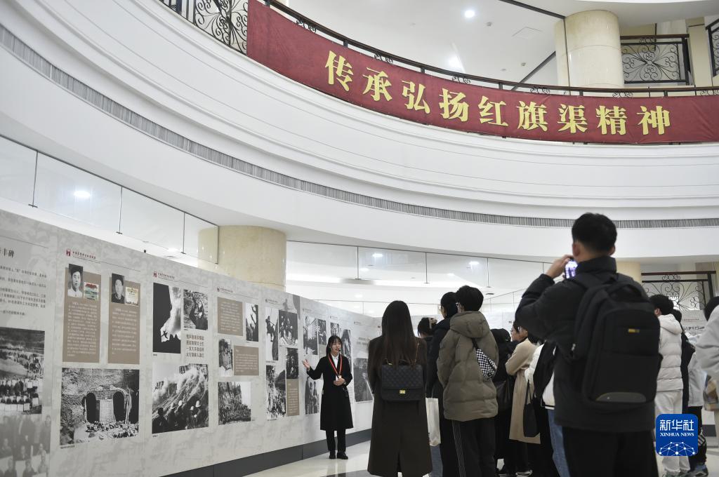 11月28日,河南農業(yè)大學(xué)的學(xué)生在參觀(guān)紅旗渠精神主題展覽。