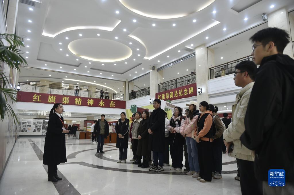 11月28日,河南農業(yè)大學(xué)的學(xué)生在參觀(guān)紅旗渠精神主題展覽。
