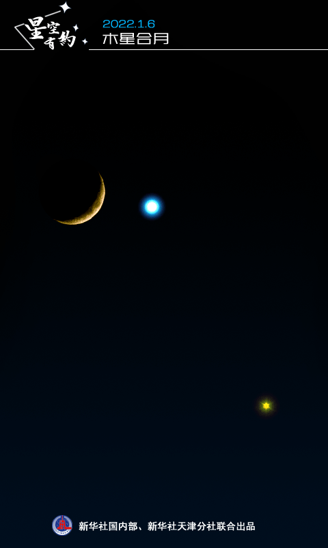 新華社天津1月4日電(記者周潤?。┬履晔讏?chǎng)“星月童話(huà)”就要上演啦!天文科普專(zhuān)家介紹,木星合月將于1月6日現身天宇,屆時(shí)如果天氣晴好,日落時(shí)分,感興趣的公眾面向西南方天空,憑借肉眼就可以清晰地看到木星和新月近距離“相依相伴”,競放光芒的精彩畫(huà)面。