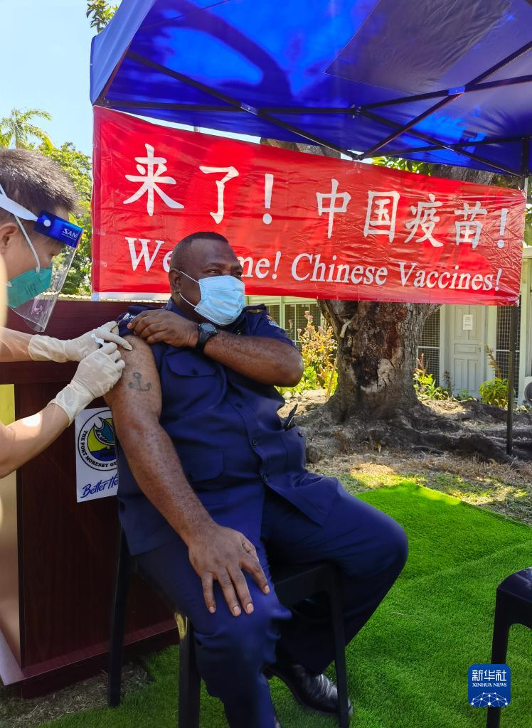 2021年7月13日,巴布亞新幾內亞政府在首都莫爾茲比港總醫院正式開(kāi)始為當地民眾接種中國新冠疫苗。新華社發(fā)(中國駐巴新大使館供圖)