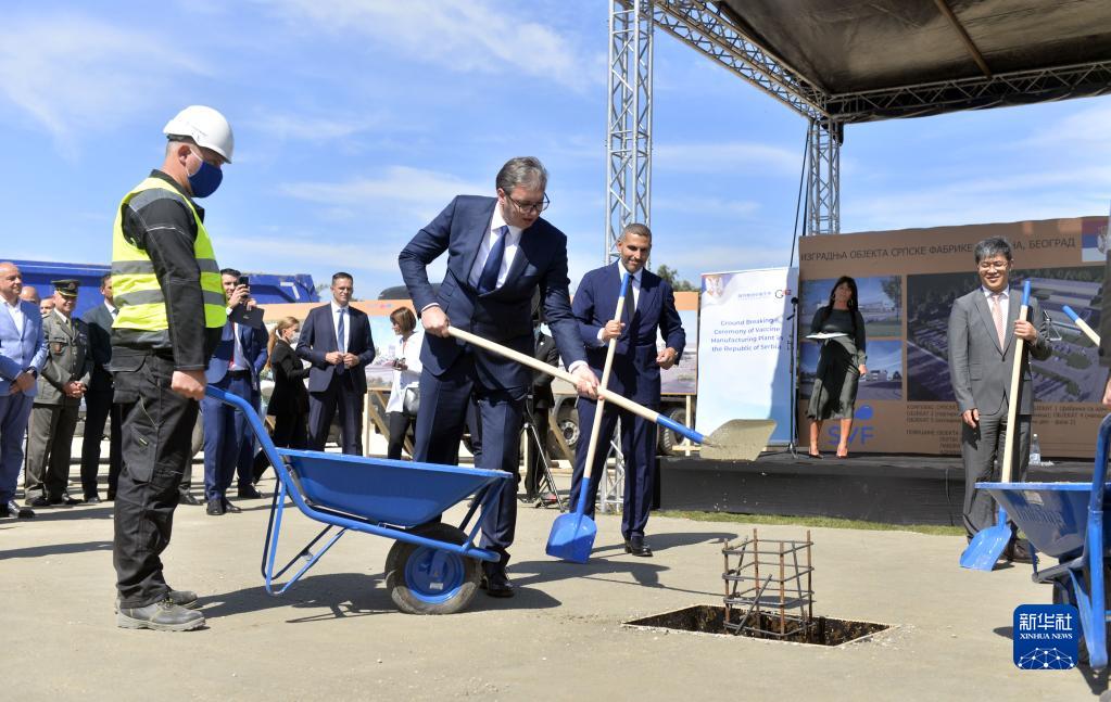 2021年9月9日,塞爾維亞總統武契奇(中)在貝爾格萊德為歐洲地區首家中國疫苗工廠(chǎng)奠基。新華社發(fā)(普雷德拉格·米洛薩夫列維奇攝)