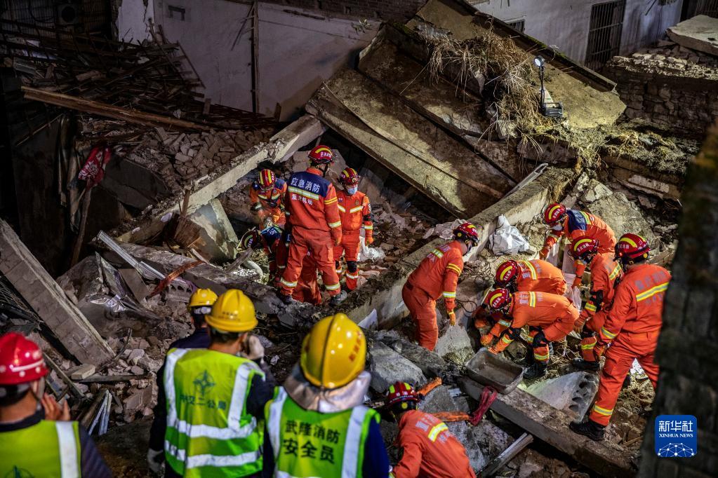 資料圖片:1月7日,在重慶市武隆區鳳山街道辦事處食堂坍塌現場(chǎng),救援人員在開(kāi)展救援。新華社記者 黃偉 攝