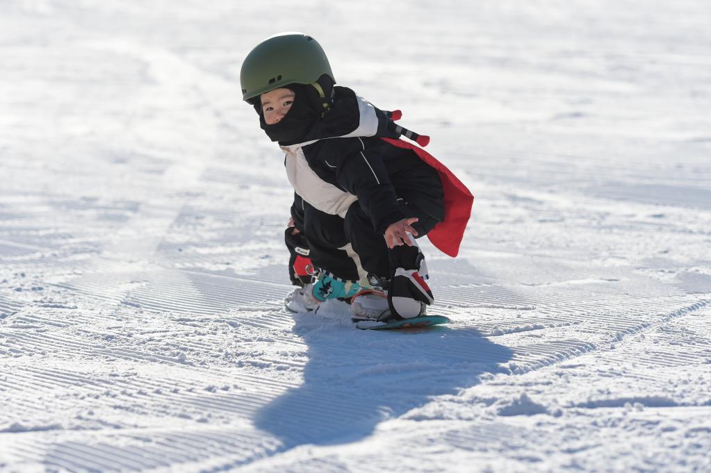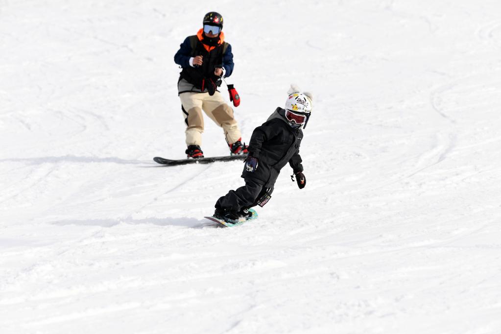 ↑滑雪愛(ài)好者在新疆阿勒泰將軍山滑雪場(chǎng)滑雪