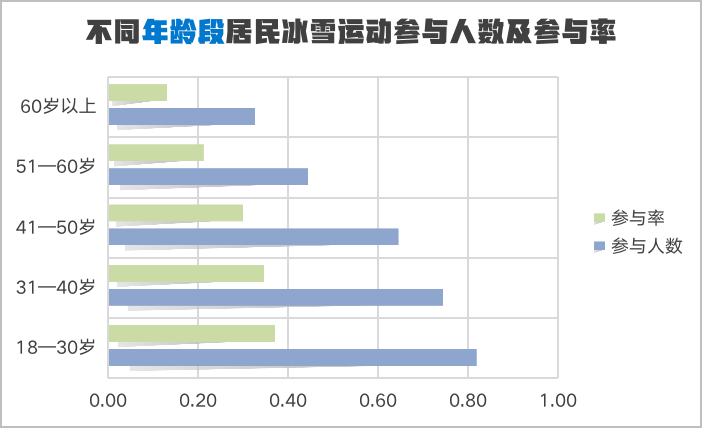 ↑不同年齡段居民冰雪運動(dòng)參與人數及參與率