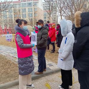 為了方便居民掃碼登記,志愿者們把二維碼貼在身上,“這樣我們就能騰出雙手,幫助老年居民操作手機?!备叽貉嚯p手凍得通紅,由于長(cháng)時(shí)間待在室外,即便裹著(zhù)厚厚的羽絨服,還是感覺(jué)刺骨的冷風(fēng)直往衣服里鉆。