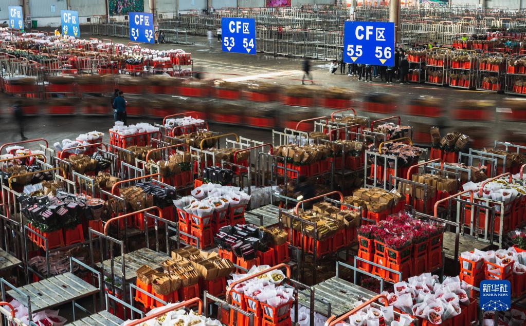 春節前,昆明國際花卉拍賣(mài)交易中心每天要拍賣(mài)400多萬(wàn)枝鮮切花,涵蓋玫瑰、康乃馨、非洲菊等40多個(gè)品類(lèi)、1000多個(gè)品種。