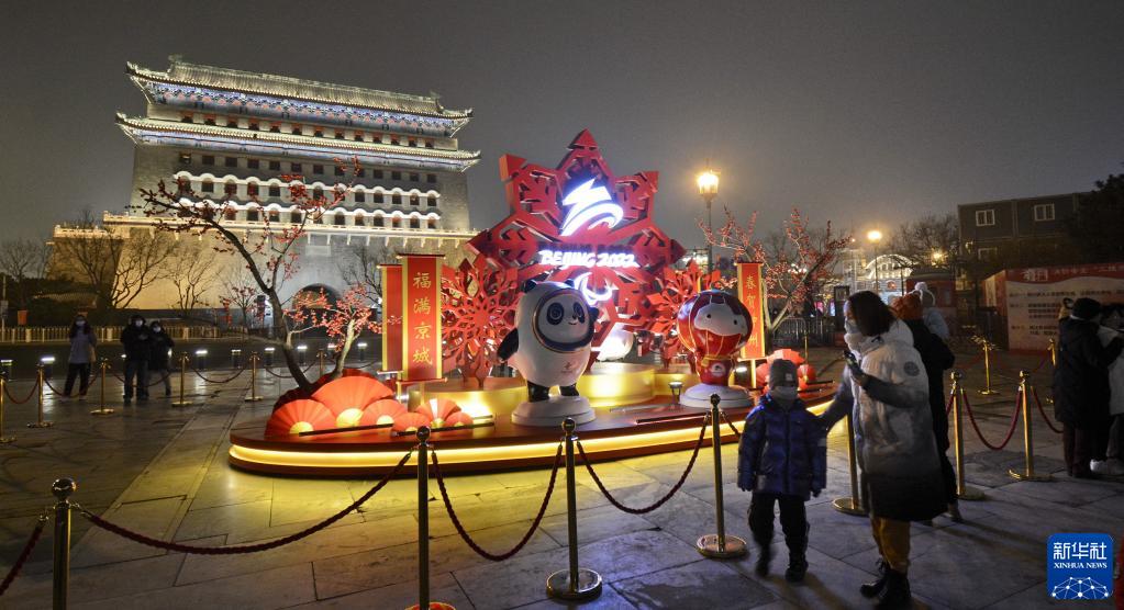 1月30日,市民在前門(mén)大街觀(guān)賞春節和冬奧主題景觀(guān)燈。新華社記者李欣攝