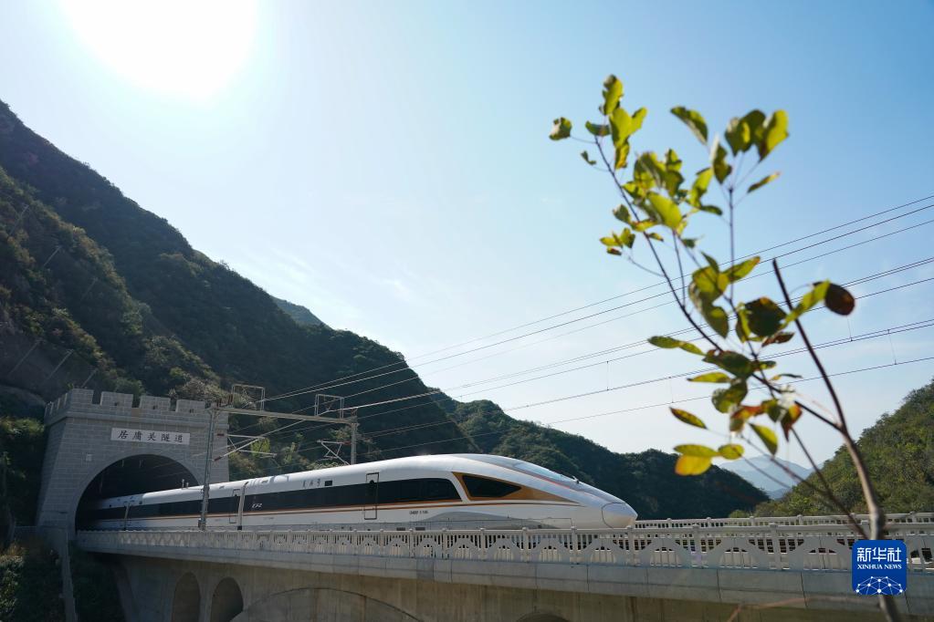 2020年10月6日,一列復興號高鐵列車(chē)穿過(guò)京張高鐵居庸關(guān)隧道。新華社記者 鞠煥宗 攝