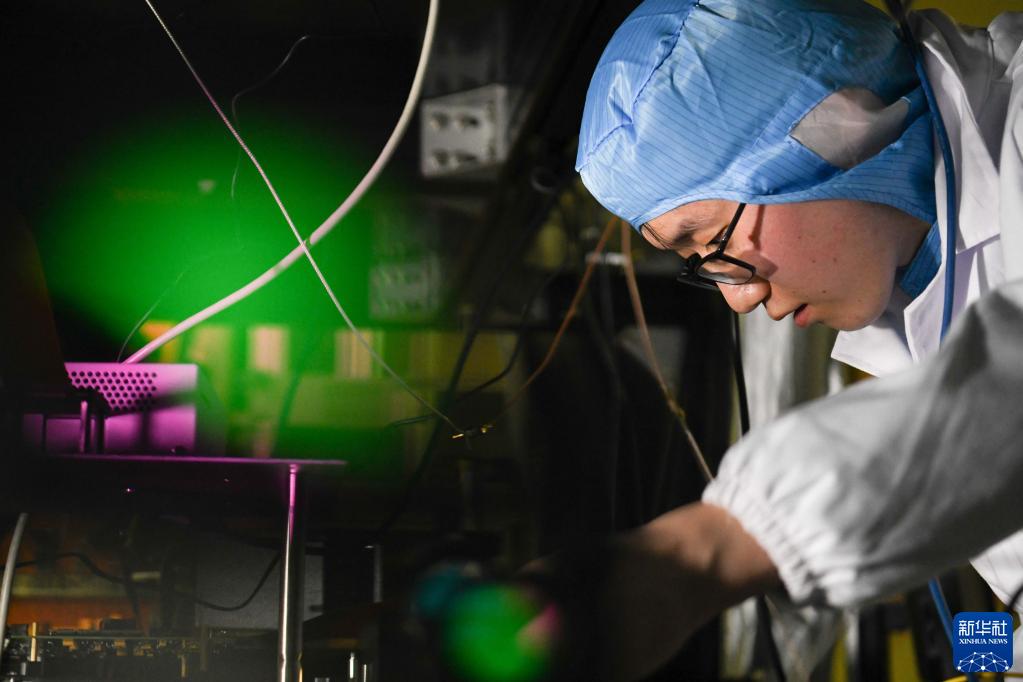 1月31日是除夕,在中國科學(xué)技術(shù)大學(xué)內,盧啟航在中國科學(xué)院量子信息重點(diǎn)實(shí)驗室做實(shí)驗。新華社記者 張端 攝
