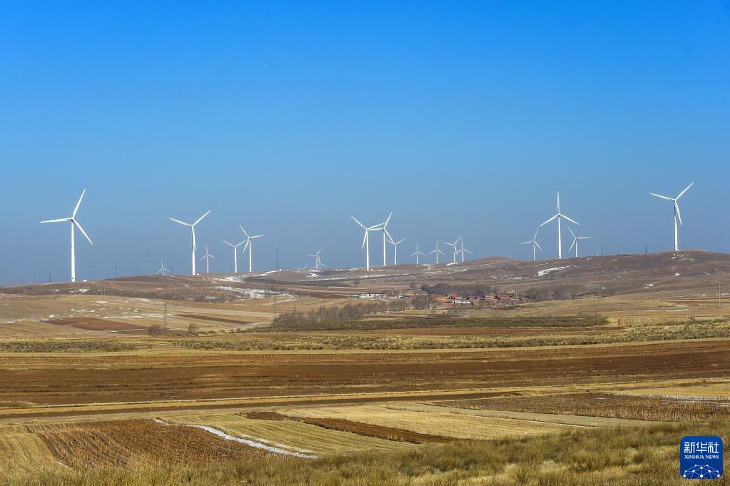 這是1月20日拍攝的位于烏蘭察布市察哈爾右翼中旗的恒潤風(fēng)電場(chǎng)。新華社記者 李志鵬 攝