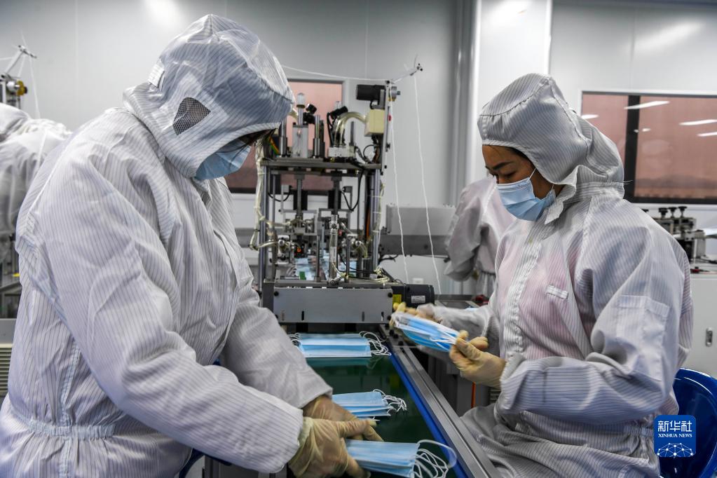 2月18日,在廣西百色市一家口罩生產(chǎn)企業(yè)內,工作人員在生產(chǎn)線(xiàn)上忙碌。自2月15日零時(shí)起,廣西百色市部分縣(市、區)解除“不進(jìn)不出”管控措施,當地正有序復工復產(chǎn)。2月17日0時(shí)至24時(shí),百色市無(wú)新增本土確診病例。新華社記者 曹祎銘 攝