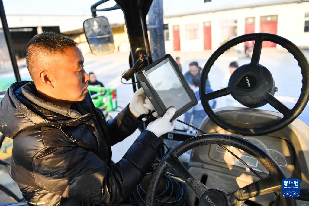 2月21日,在山西省運城市芮城縣東恒農機專(zhuān)業(yè)合作社,技術(shù)人員在給農機安裝自動(dòng)駕駛系統。新華社記者 柴婷 攝