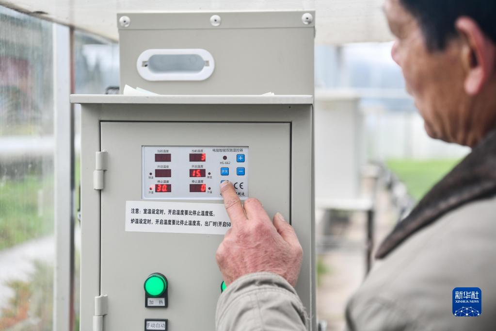 在貴州省榕江縣車(chē)江壩區智能化育苗中心大棚,農技人員在調節棚內溫度(2月18日攝)。新華社記者 楊文斌 攝
