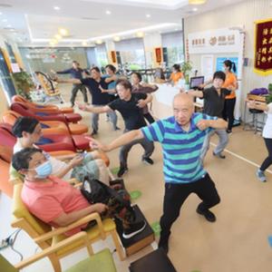 2021年10月13日,在上海市徐匯區康健街道的“長(cháng)者運動(dòng)健康之家”,老人們在健身后練習八段錦。新華社記者 王翔 攝