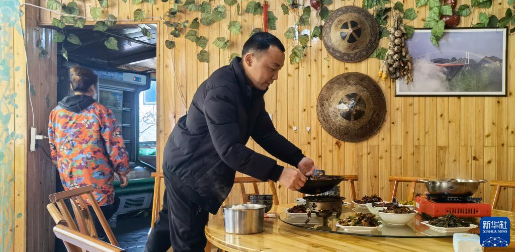 3月28日,幸福村的黃勇在“農家樂(lè )”招待客人。新華社記者 趙眾志 攝