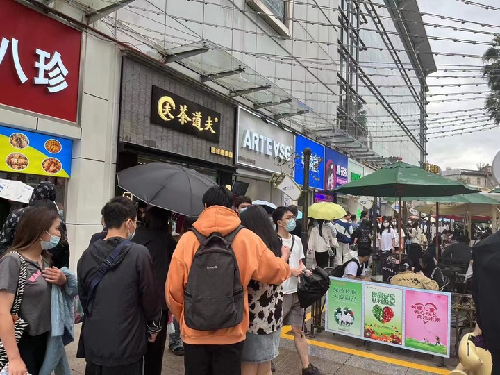廣西南寧市一商場(chǎng)臨街商鋪外,消費者絡(luò )繹不絕。(廣西壯族自治區商務(wù)廳 供圖)