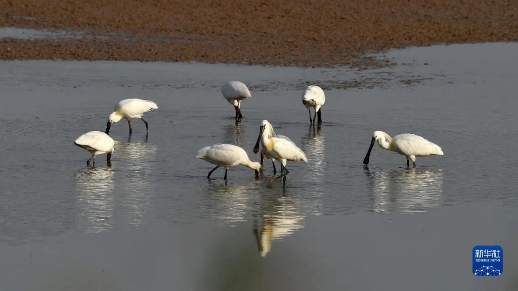 這是4月10日在河南黃河濕地國家級自然保護區孟津段拍攝的白琵鷺。新華社發(fā)(馬朝紅 攝)
