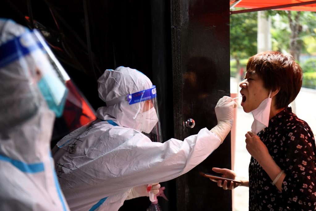 7月3日,在安徽省宿州市泗縣虹城街道東關(guān)社區,醫務(wù)人員為居民進(jìn)行核酸采樣。新華社記者 黃博涵 攝