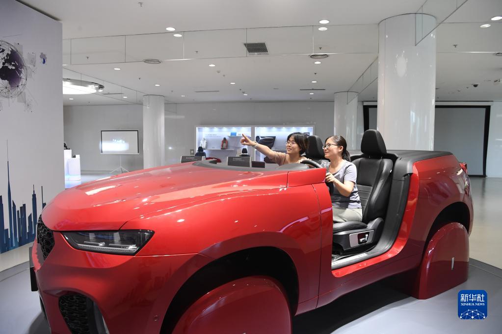 在河北保定市長(cháng)城汽車(chē)哈弗技術(shù)中心,參觀(guān)者在體驗5G智能駕駛(2021年7月15日攝)。新華社記者 朱旭東 攝