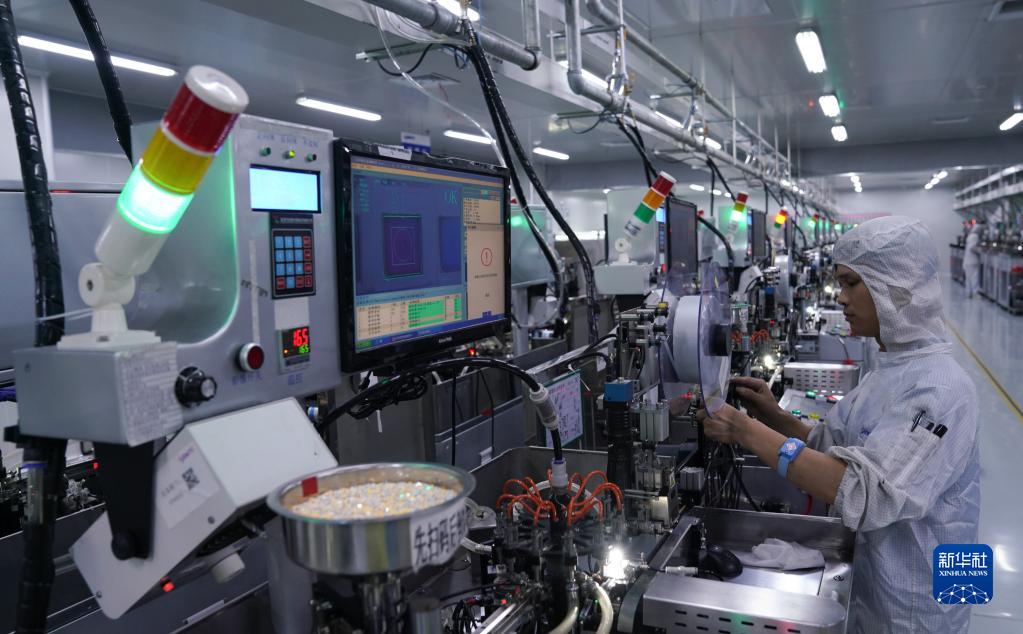 江西兆馳光元科技股份有限公司的工作人員在車(chē)間進(jìn)行LED封裝編帶工序(2021年6月25日攝)。新華社記者 胡晨歡 攝