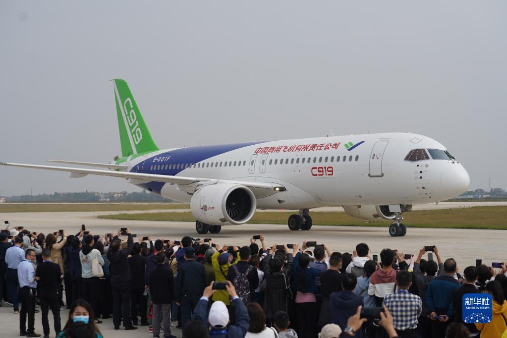 在2020南昌飛行大會(huì )上,國產(chǎn)大飛機C919亮相江西南昌瑤湖機場(chǎng)并進(jìn)行飛行表演(2020年10月31日攝)。新華社記者 周密 攝