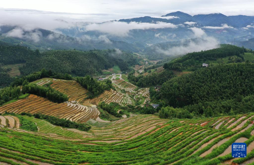 這是江西省贛州市崇義縣上堡梯田(2022年6月16日攝,無(wú)人機照片)。新華社記者 萬(wàn)象 攝