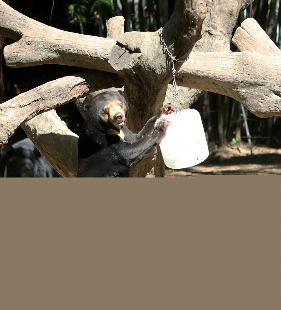 7月22日,黑熊在長(cháng)隆野生動(dòng)物世界玩冰塊。