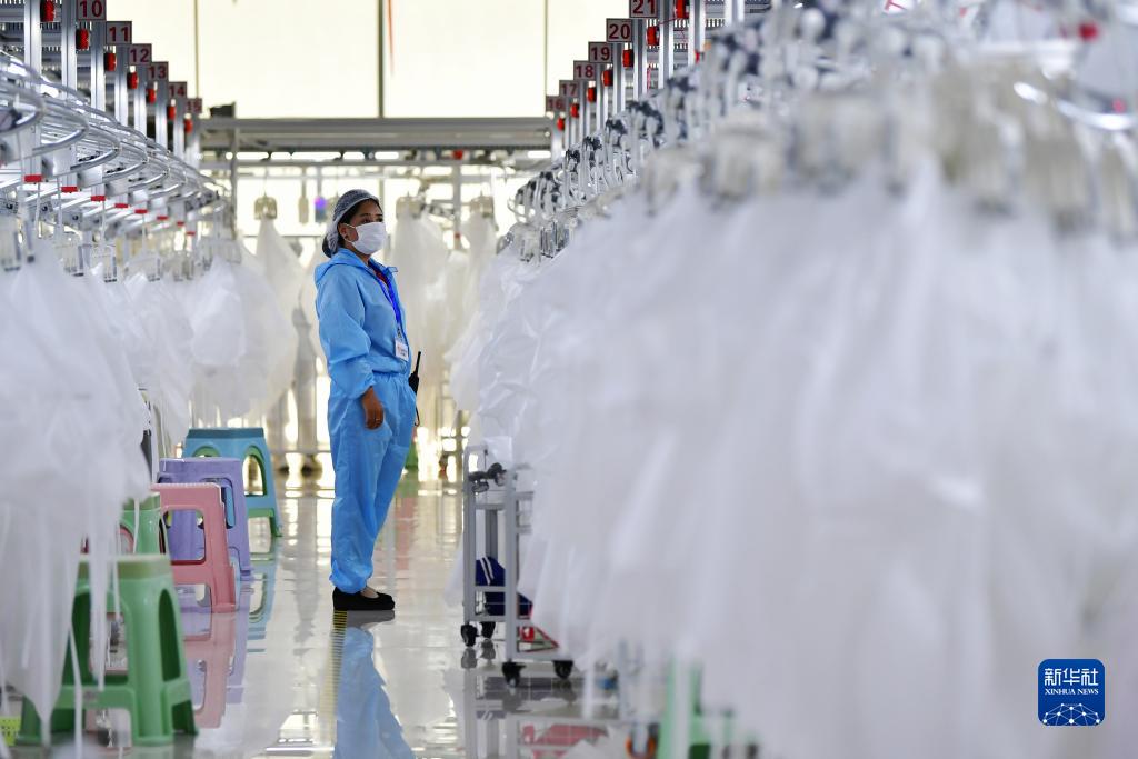 在甘肅省臨夏回族自治州積石山保安族東鄉族撒拉族自治縣,依托東西部扶貧協(xié)作平臺引進(jìn)的服裝加工企業(yè)甘肅拓奇扶貧車(chē)間的員工在服裝加工生產(chǎn)線(xiàn)上作業(yè)(2020年8月9日攝)。新華社記者 陳斌 攝